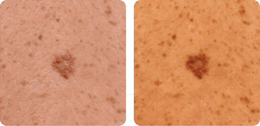 Неполяризованное и кросс-поляризованное освещение выявляет новообразования кожи. Съёмка с обоими режимами освещения производится последовательно за 1 секунду, обеспечивая точную регистрацию новообразований.